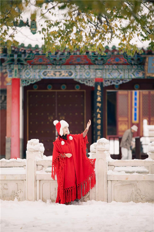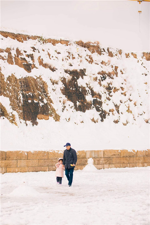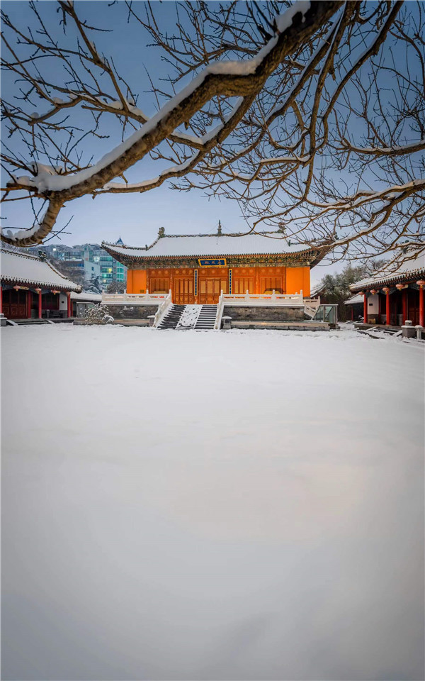 城市一夜間開啟“白色模式”,古建筑也添了“新衣”。 光華 攝