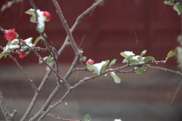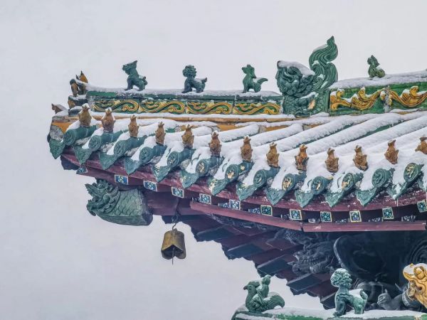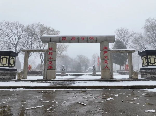 雪后,周口鹿邑縣城東北隅明道宮景區(qū)的建筑、樹(shù)木和花草都被白雪覆蓋,美麗而寧?kù)o。景區(qū)的屋頂上積雪如白絲絨一般,與紅墻綠樹(shù)相映成趣。
