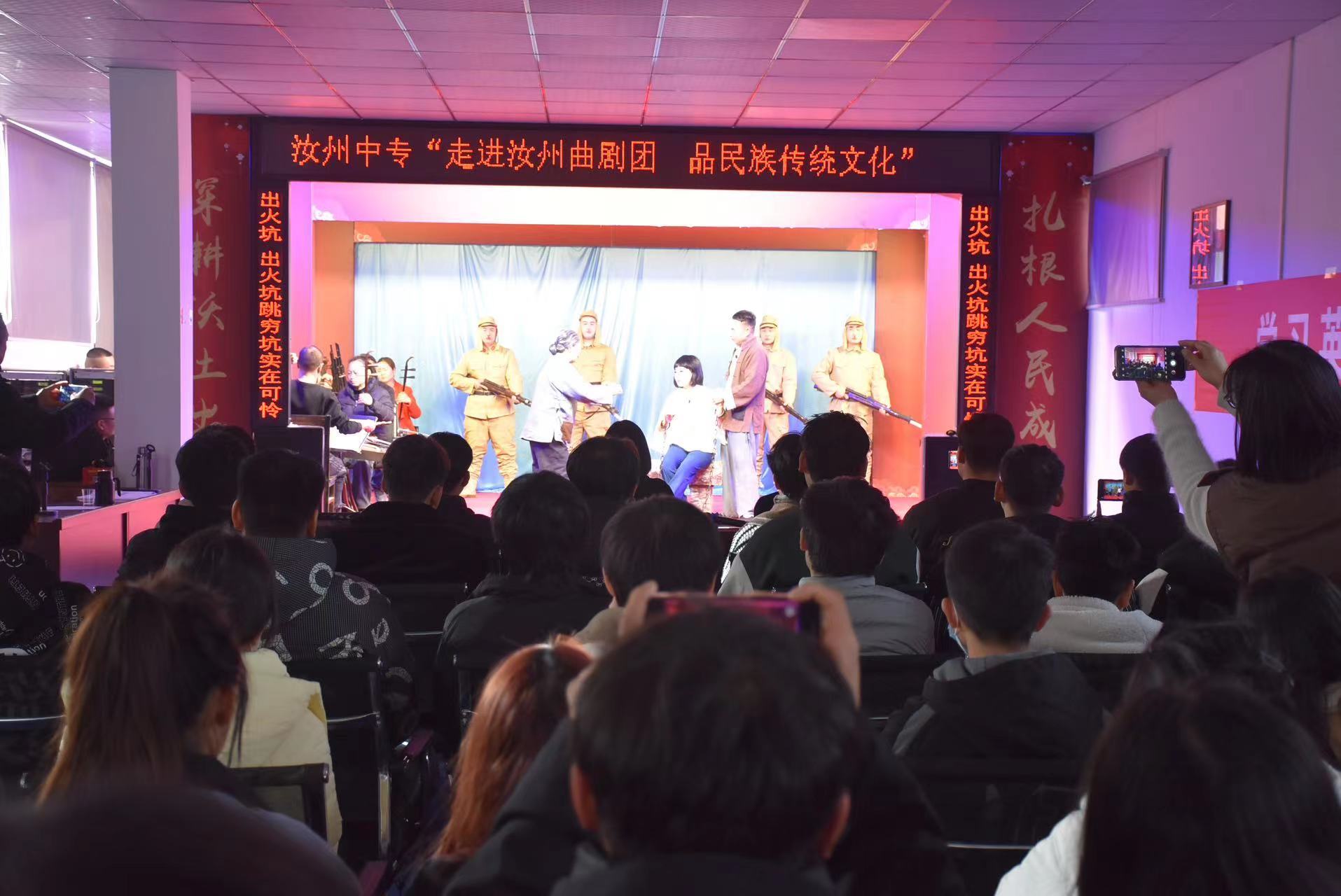 當天上午,在汝州市曲劇團三樓排練廳,汝州市文聯(lián)組織市戲劇家協(xié)會、該市文藝志愿者協(xié)會、作家協(xié)會、攝影家協(xié)會等文藝團體的骨干老師,為上述兩個舞臺劇提供全方位藝術指導。汝州市曲劇團近年來排練的經典革命現代戲《馬英》,專門為學生們現場表演了其中的一個選場。專業(yè)演員的精湛表演吸引了學生們的目光,大家聚精會神地觀看演出,并被其中的劇情所感染,一些學生還為革命志士拋頭顱灑熱血的大無畏精神所折服,流下了激動的淚水。