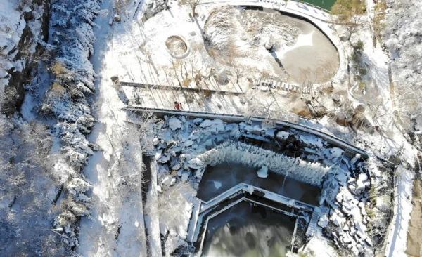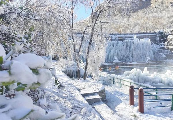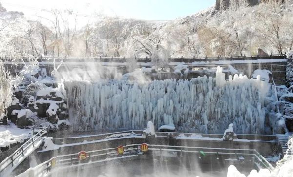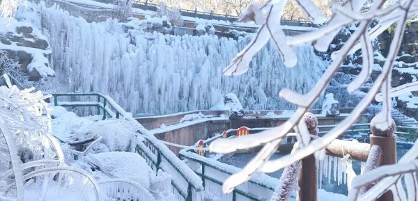在長壽山五連池廣場,看不盡的冰掛、玉樹、瓊林。那些冰掛晶瑩剔透、造型各異,似利劍,如簾幕,像飛瀑,它們在陽光的照射下潔白如玉, 宛如一件件天然冰雕藝術(shù)品,構(gòu)成了冬日里獨特的美景。