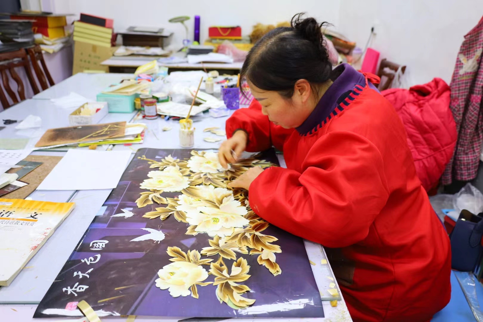 洛寧麥秸畫廠員工程曉花告訴記者:“我們這里時間比較自由,像蝴蝶這小的就可以拿回家做,來這上班既可以照顧家里面也可以增加點收入。”