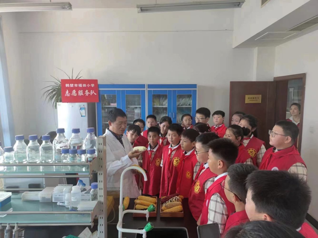 在分子育種實(shí)驗(yàn)室,科研人員為同學(xué)們講解了玉米的胚芽、種類以及用途等相關(guān)知識(shí)。同學(xué)們興致盎然,在看一看、摸一摸、動(dòng)一動(dòng)、聞一聞和問(wèn)一問(wèn)中,真正走進(jìn)了植物世界。本次活動(dòng),融教育性、知識(shí)性、趣味性于一體,培養(yǎng)了同學(xué)們的科學(xué)精神、實(shí)踐創(chuàng)新能力等,同學(xué)們走近科學(xué),感受自然,領(lǐng)略了現(xiàn)代農(nóng)業(yè)的奇妙,在同學(xué)們的心田播下了一顆科技興農(nóng)的種子。