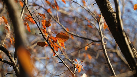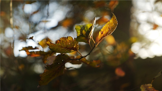 圖為山中泛黃的樹(shù)葉。 賈蘊(yùn)智 攝