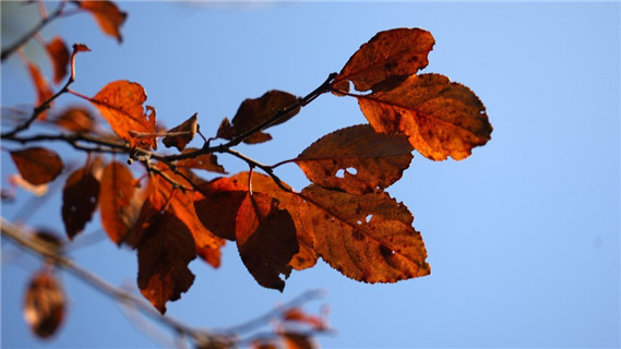 暗紅的樹(shù)葉映著藍(lán)天 賈蘊(yùn)智 攝