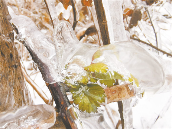 被凍住的樹(shù)葉 孫暢 攝