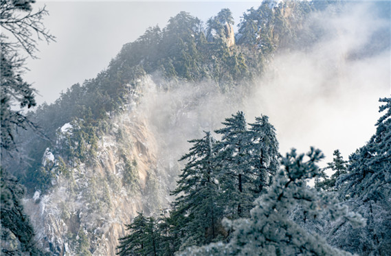 大雪洗禮后的白云山,搖身變成一片銀色的世界,漫山霧淞、冰掛、雪色,組成人間仙境的盛景。