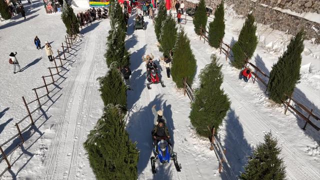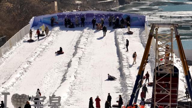 在新鄉(xiāng)太行山中的寶泉大峽谷,整個(gè)峽谷因低溫冰雪華麗換裝成冬季限定款皮膚,滑雪戲雪、雪地游樂、雪鄉(xiāng)打卡、雪國(guó)演藝等冰雪主題活動(dòng)火熱開展,給游客帶來全新的山地冬季旅游體驗(yàn)。拉上雪圈從積雪坡道滑下,感受雪上飛馳的暢快;雪地海盜船、雪地摩托、雪地坦克,讓游客深度體驗(yàn)冰雪的速度與激情。