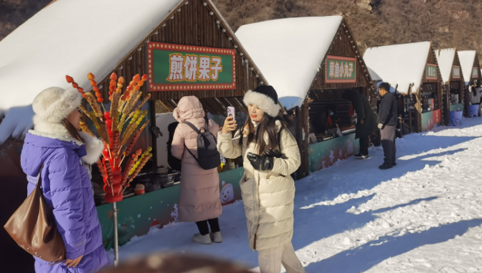 在寶泉大峽谷,低溫冰雪使其華麗換裝成了東北雪鄉(xiāng)的限定款皮膚;隨著冰雪節(jié)的開(kāi)幕,滑雪戲雪、雪地游樂(lè)、雪鄉(xiāng)打卡、雪國(guó)演藝等冰雪主題活動(dòng)也火熱開(kāi)展,給游客帶來(lái)全新的山地冬季旅游體驗(yàn)。峽谷里的雪屋也被悉數(shù)妝點(diǎn),屋頂?shù)姆e雪配著紅綠色的主題裝飾深受年輕人喜愛(ài),小院中的各種打卡場(chǎng)景更是為游客提供了更多打卡選擇。
