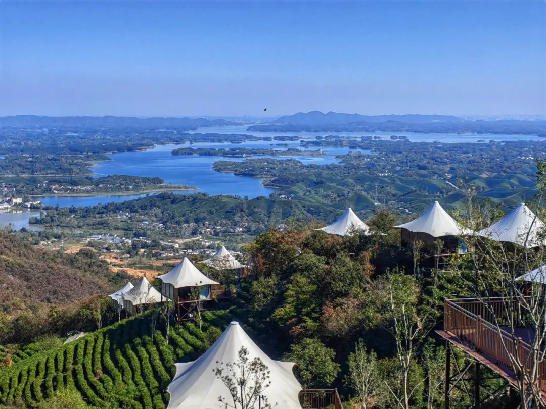 景區(qū)西靠桐柏巍巍山脈,東瞰煙波浩渺南灣湖畔,云崖古堡、觀星臺(tái)、茶綠棧道、無(wú)邊泳池、水滑道、天空之境、帳篷民宿、星空酒店等游客打卡點(diǎn),是“看山看水看茶園”的高端休閑旅居康養(yǎng)之地。