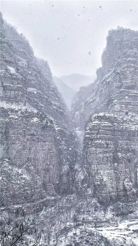 一場雪,讓太行大峽谷變成了銀裝素裹的童話世界,瓊枝玉葉,粉裝玉砌,連綿的雪山仿若置身仙境。