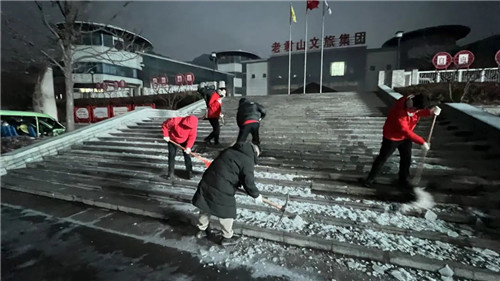 凌晨6點(diǎn),全體職工到崗,齊心協(xié)力投入到清雪工作中,對景區(qū)內(nèi)主干道進(jìn)行除雪,以確保游客的行程順利和安全。