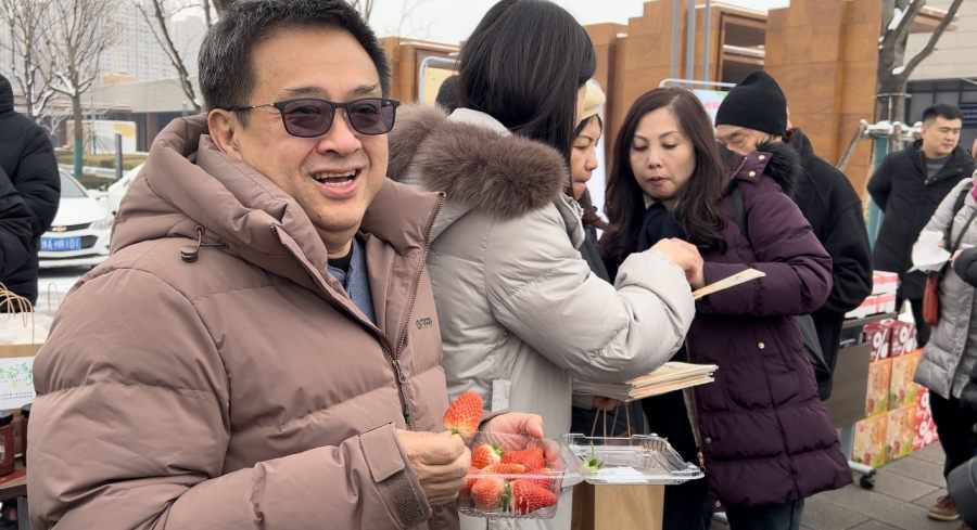 “很甜!很好吃!”在一群馬來西亞華僑連連的稱贊聲中,一盒盒鮮艷欲滴的草莓在位于河南省鄭州市中牟縣的只有河南·戲劇幻城景區(qū)門口亮相,在寒冷冬天為外來游客帶來一絲香甜和暖意。