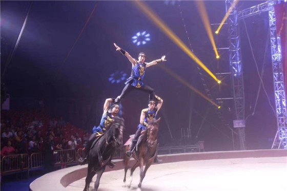 他表示,活動(dòng)期間,表演團(tuán)隊(duì)將在每天進(jìn)行2-4場(chǎng)表演,除經(jīng)典馬術(shù)外,觀眾還能在現(xiàn)場(chǎng)看到將雜技藝術(shù)和空中舞蹈完美融合的雙人皮條、展現(xiàn)常人所不能的大跳板、兒童最愛(ài)的“萌萌狗”、激情四射的桑巴舞蹈、“霓裳鼓韻”女子蹬鼓、令人拍案叫絕的腹語(yǔ)魔術(shù)、詼諧有趣的滑稽小丑等,在歡聲笑語(yǔ)中享受觀演樂(lè)趣。