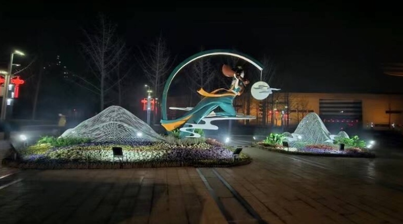 記者現(xiàn)場注意到,特別是雕塑公園《中之舞》《神話》《若然》等10件室外雕塑,以冷色光和暖色光對(duì)比的方式,使周圍環(huán)境照明和雕塑主體亮化照明相互碰撞與融合,更好地提升雕塑的立體感。