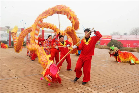 著一身艷麗的龍裝,手舞長龍,揮動龍頭,彩龍騰空而起,上下翻滾,氣勢磅礴。好動的“麒麟”,眨巴著銅鈴般的大眼,在人群中穿梭自如,經(jīng)過的地方便能點燃一片歡聲笑語,那喜慶熱鬧的年味便排山倒海般傳遞開來。踩高蹺、劃旱船等各種精彩的表演將輪番上演。