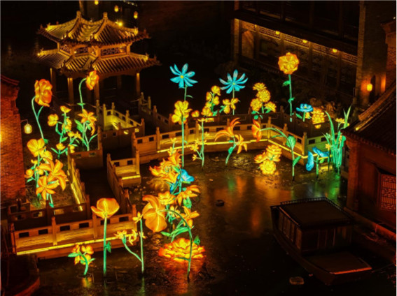 夜幕降臨,建業(yè)電影小鎮(zhèn)更是美輪美奐。七千余盞華燈齊放,將小鎮(zhèn)裝點(diǎn)得如同夢幻般的世界。其中,憨態(tài)可掬的太極街貓燈、美輪美奐的水中花燈以及姹紫嫣紅的街區(qū)花燈等各式花燈爭奇斗艷,為游客們營造出濃厚的節(jié)日氛圍。此外,星光打鐵花、國潮新春煙花秀等迎春節(jié)目也將點(diǎn)亮小鎮(zhèn)的夜空,為游客們帶來璀璨奪目的視覺享受。