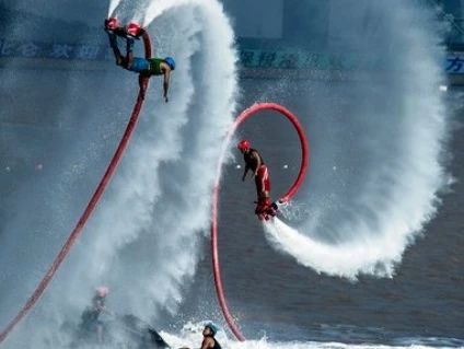 “水上飛人”是一項集觀賞、競技和驚險刺激于一體、富有現代文明特征的高速水上運動,是公認的具有較大影響力、視覺震撼力、較高收視率的項目之一。“水上飛人”這項運動已經被評為當今世界四大最富創(chuàng)造力和潛力的運動,其次它的趣味性、征服感、運動性、觀賞性帶給觀眾無限驚喜。