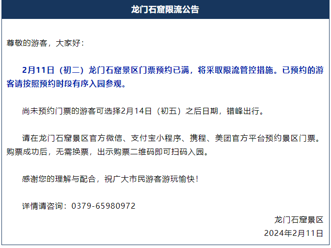 預(yù)約已滿!洛陽多家景區(qū)發(fā)布最新提醒