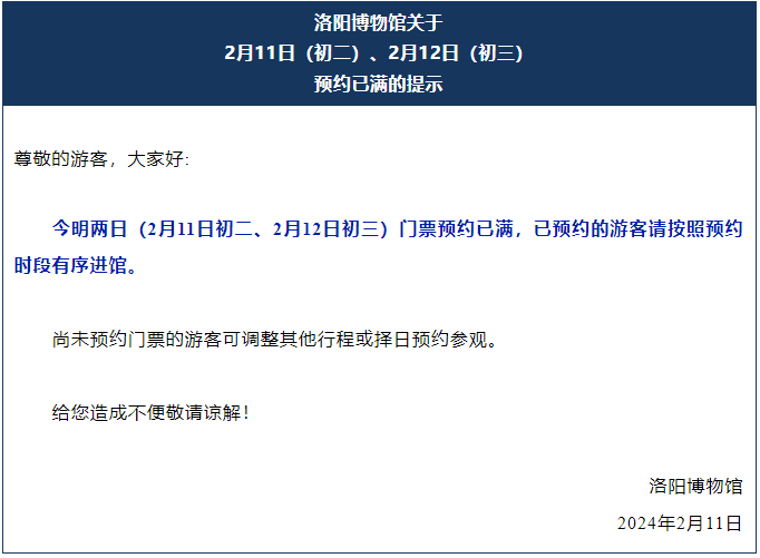 您的當(dāng)前位置:網(wǎng)站首頁 > 出行資訊 > >預(yù)約已滿!洛陽多家景區(qū)發(fā)布最新提醒