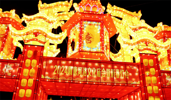 作為洛陽燈會“主戰(zhàn)場”之一,今年,隋唐城遺址植物園以“龍吟隋唐洛陽年”為主題,通過舉辦游園、廟會、燈展活動,融合盛世隋唐、龍年、國潮、互動體驗,展現盛世隋唐的古今風貌。