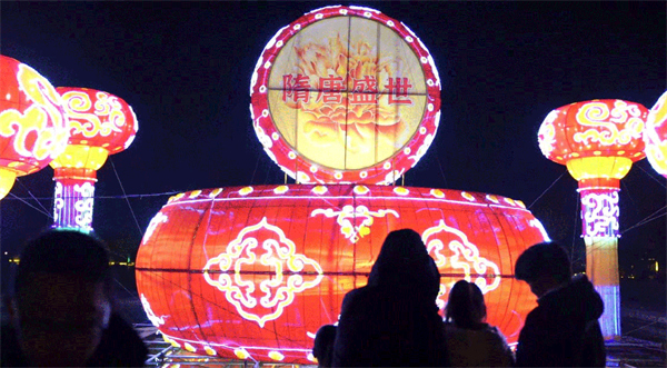 生命之樹、萬里長城、雙龍戲珠、隋唐盛世、十二生肖、敦煌飛天、祥獅賀歲等百十余組大型燈組壯麗璀璨,在遍布園區(qū)的裝飾燈映襯下,一步一景,為游客呈現一場視覺驚艷、體驗震撼、獨具濃厚隋唐特色的夜間游園。