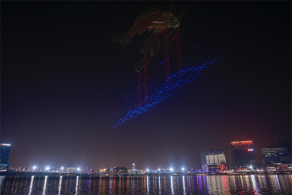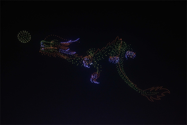 無人機(jī)表演“飛龍?jiān)谔?rdquo;造型