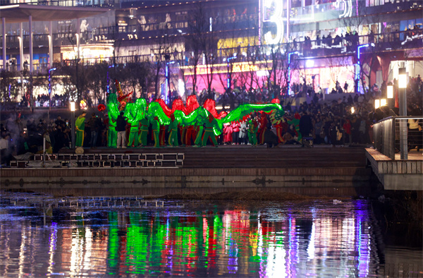 2月11日,大年初二,晚上7點(diǎn)20分,鄭州龍湖金融島熱鬧非凡,近2000架無人機(jī)從湖畔起飛,在夜空中呈現(xiàn)出“飛龍?jiān)谔?rdquo;“魚躍龍門”等壯觀造型,贏得現(xiàn)場市民的陣陣喝彩。
