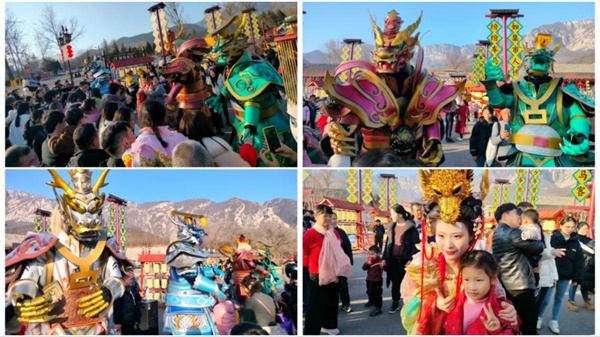 眾多NPC齊聚嵩山,用最真摯的話語給廣大游客帶來新春的祝福和歡樂。天龍八部NPC、福祿壽喜財五福 NPC 在少林景區(qū)與游客歡樂互動,還有嵩山景區(qū)原創(chuàng)NPC賣松客、云川道長、中岳龍母互動演繹,游客們紛紛上臺與他們開心互動,更有機(jī)甲戰(zhàn)士驚喜亮相,美猴王、俠客機(jī)甲、四岳龍王在三大景區(qū)跟隨音樂霸氣舞動,吸引了眾多游客合影留念。夜晚在嵩陽景區(qū),天中市集燈光燦爛美食云集,所有NPC齊聚嵩山腳下與游客開啟互動嗨聊模式,更有眾多游客在K歌區(qū)域激情開唱將現(xiàn)場熱情推向高潮,他們縱情高歌、一展豪情,沉浸在這歡樂的氛圍當(dāng)中。