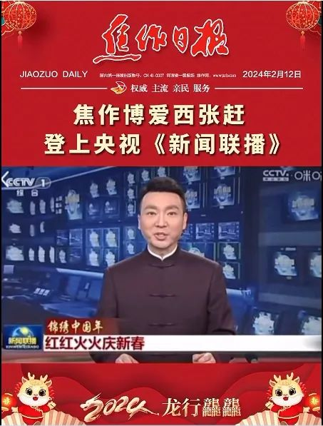 “新春佳節(jié),神州大地喜慶祥和,河南焦作的鄉(xiāng)村燈光秀、四川達(dá)州的創(chuàng)意燈景等讓人目不暇接,感受幸;盍χ袊(guó)年……”甲辰龍年大年初二,河南焦作亮相央視《新聞聯(lián)播》,畫面上的“鄉(xiāng)村燈光秀”正是去年“一天四上央視”的博愛西張趕。
