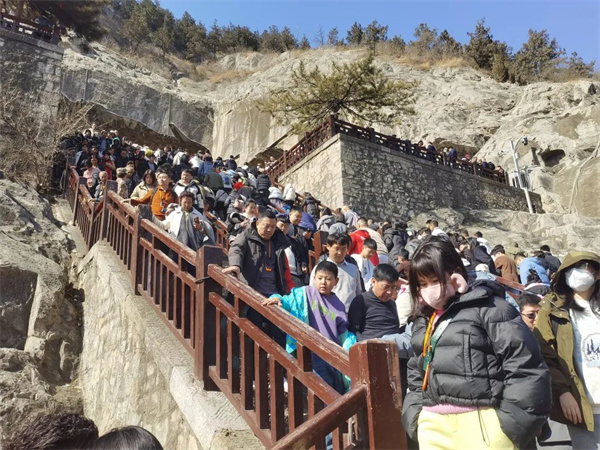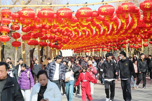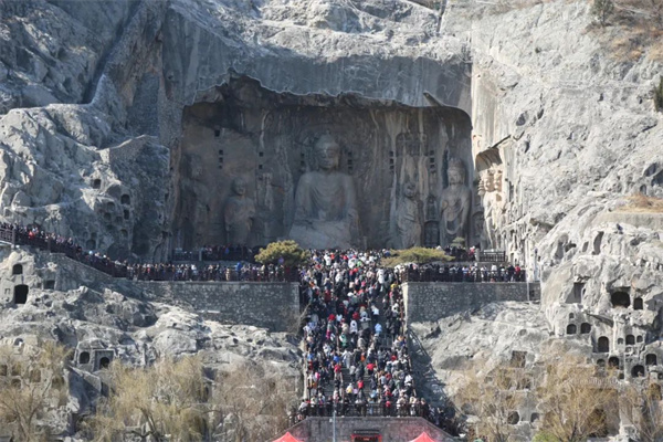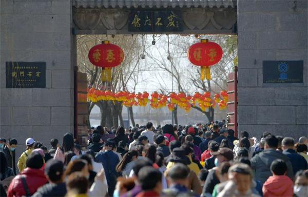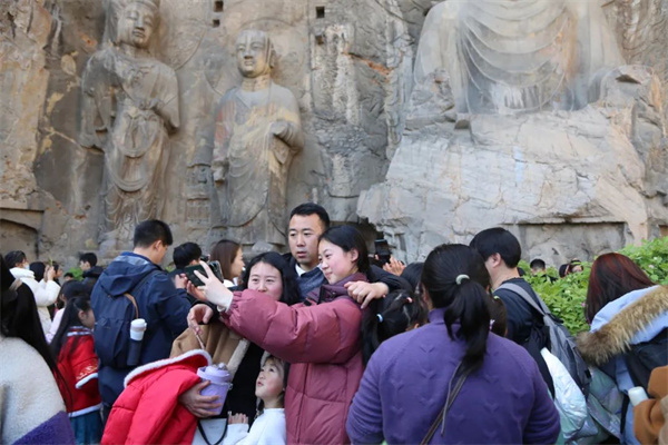 在龍門石窟,徜徉秀麗山水,與窟龕造像隔空對望,感受新年游龍門的熱鬧、喜慶氛圍。
