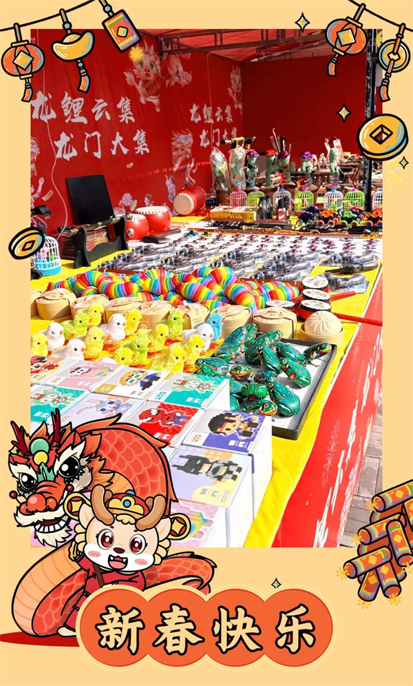 還記得小時候趕集的快樂嗎?彩燈盞盞、煙火幕幕……釀造著兒時最喜悅、最難以忘懷的年味記憶。這個春節(jié),游客們都愛在龍門古街的“龍鯉云集·龍門大集”活動里尋找一些新年的快樂要素。