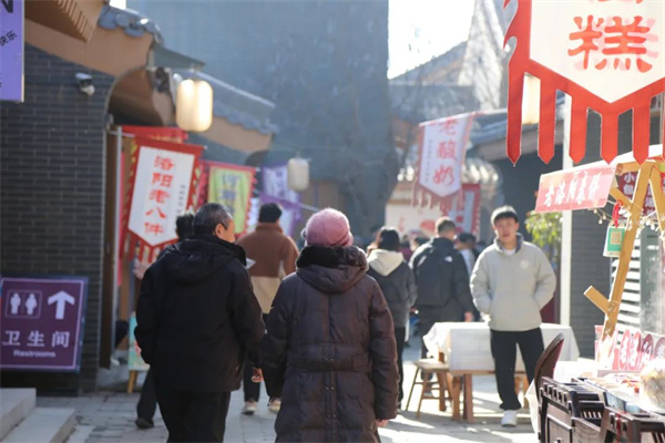 游客們有的身著漢服,在漢服打卡區(qū)尋找“出片”角度,定格美好回憶,有的品嘗特色美食,品味舌尖上的“洛陽”,還有的買份可愛的文創(chuàng)帶回家,增添新年儀式感。