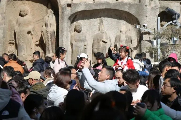 龍門石窟有多熱鬧?景區(qū)內(nèi)隨處可見溫馨幸福的三口之家、扶老攜幼的四世同堂、溫情歡快的情侶,處處洋溢著溫馨歡樂的節(jié)日氛圍。