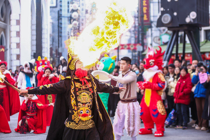 春節(jié)期間,除了特色的主題游玩活動(dòng),在中牟的電影小鎮(zhèn)景區(qū),各類迎新春演出與特色民俗互動(dòng)體驗(yàn)持續(xù)推出,除了城市大劇《穿越德化街》、王牌夜游《一路有戲》等好評(píng)不斷的精彩演出,圍繞國潮元素打造的160多場新春節(jié)目也在精彩上演。