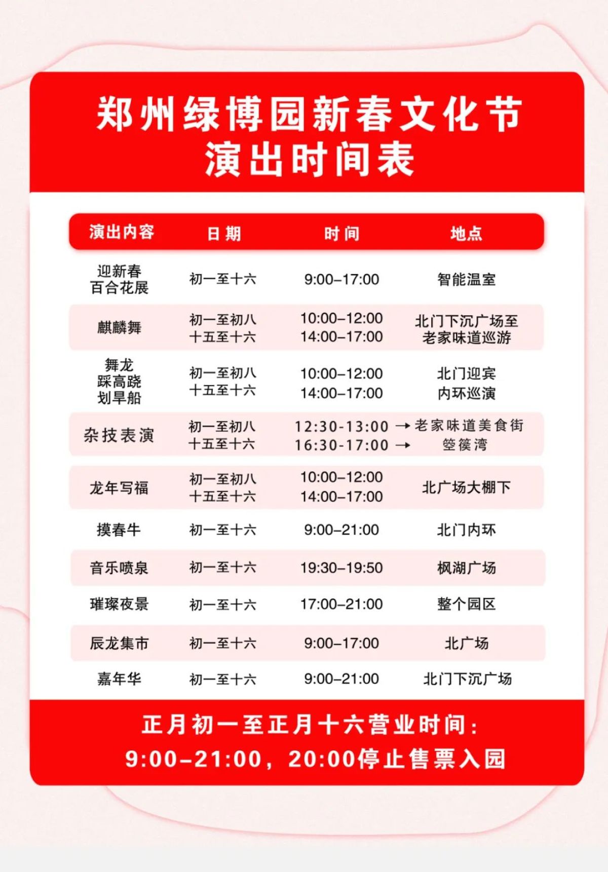 假期有期,歡樂無期,鄭州綠博園內精彩仍在繼續(xù),百合花展、音樂噴泉、璀璨夜景將不間斷持續(xù)到正月十六,民俗社火表演初九至十四暫停表演,正月十五、十六回歸上演。
