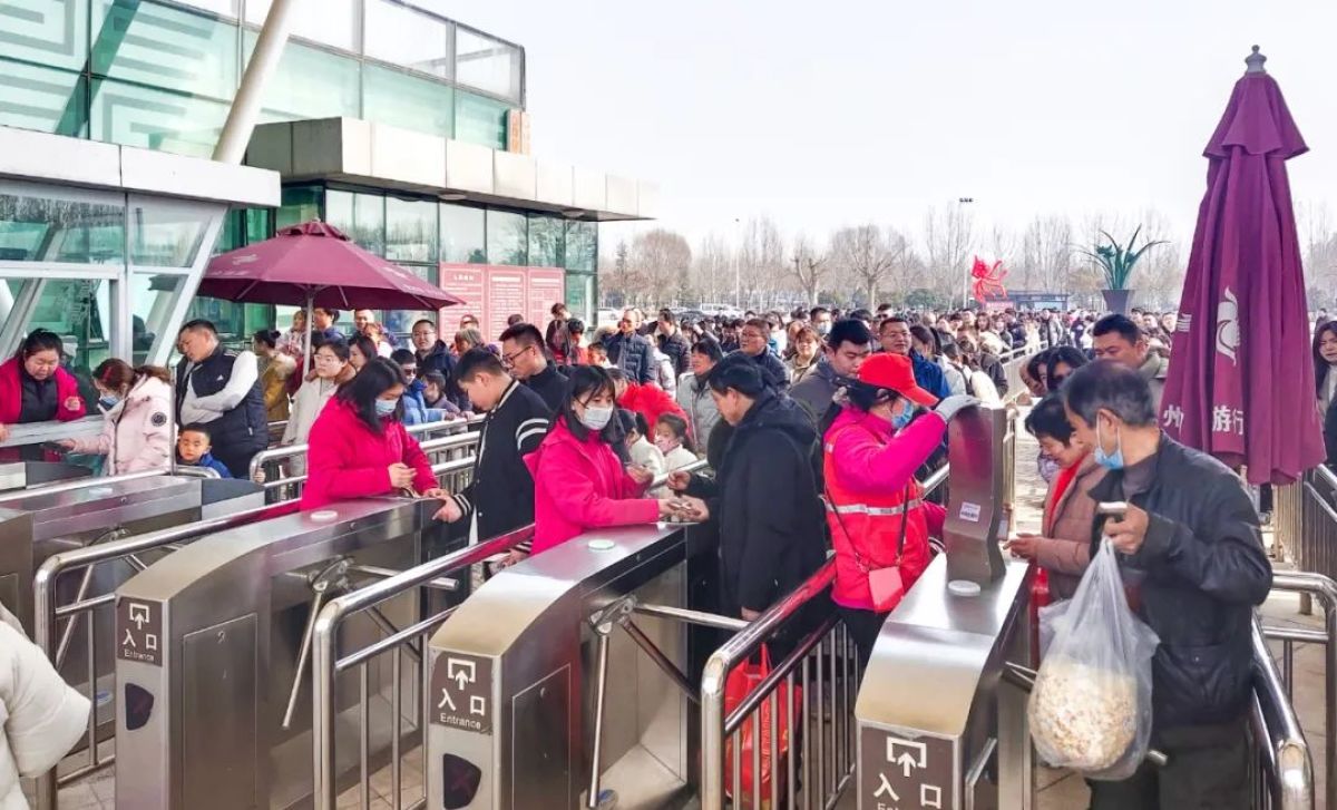 整個春節(jié)假期,鄭州綠博園內年味濃郁,處處洋溢著節(jié)日的歡樂氛圍。鑼鼓聲聲,游人如織,秩序井然。大量游客有序地進入景區(qū),各景點人流如潮,游客們興致盎然地拍照留念,共享新春的快樂。