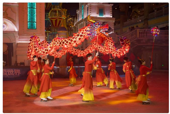 春節(jié)假期,銀基動物王國、冰雪世界、御溫泉、摩天輪、冰雪酒店等項目推出了“百獸賀春大拜年,火龍納福慶團圓”的精彩主題活動,園區(qū)內(nèi)紅燈籠、中國結(jié)、新春吊旗等美陳,營造出了濃厚的龍年春節(jié)喜慶氛圍。