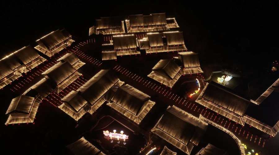 河畔水上,長(zhǎng)街巷尾,大大小小的龍燈造型活靈活現(xiàn),好運(yùn)錦鯉躍然眼前,大小相襯,動(dòng)靜相宜,時(shí)而穿行于街巷,時(shí)而靜臥于水上。賈魯小鎮(zhèn)獨(dú)有的河流+古鎮(zhèn)+山水環(huán)境,為古色古香的創(chuàng)意街景提供了無(wú)限可能,原汁原味的攤位市集,更有從熒幕中走出來(lái)的吆喝小販,復(fù)刻了傳統(tǒng)的“上元節(jié)”盛況。前來(lái)游玩的李先生一家感慨道:“原本想著只是個(gè)普通的燈會(huì),沒(méi)想到還有直升機(jī)游覽、舞龍舞獅、漢服秀,可太熱鬧了!帶著孩子來(lái)不光玩得開(kāi)心,還感受到了很多傳統(tǒng)文化,尤其是那個(gè)走進(jìn)古著的活動(dòng),在游玩中了解古代名著,真好!”