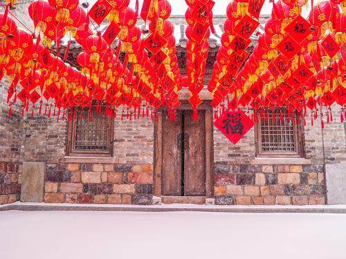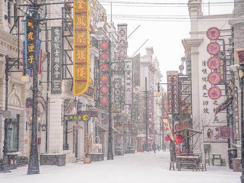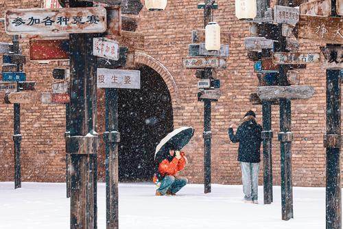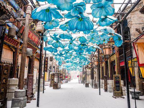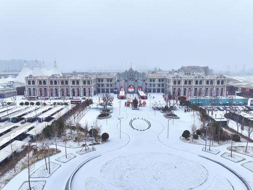 一夜之間,建業(yè)電影小鎮(zhèn)樹樹銀花,滿目白雪,被裝點成唯美動人的童話世界;只有河南雪落麥田,生機勃勃,宛如詩意無限的水墨畫卷……當一片片雪花飄落小鎮(zhèn),老鄭州便穿過百年時光,踏雪而來。一入小鎮(zhèn),就仿佛進入童話世界,帶領游客見證百年前繁盛昌盛的老鄭州。從頭而降的雪花,輕輕地飄落在小鎮(zhèn)的華燈上,烘托著還未散去的年味,雪花無聲地覆蓋住復古精巧的屋宇,抒寫著電影小鎮(zhèn)獨有的浪漫。