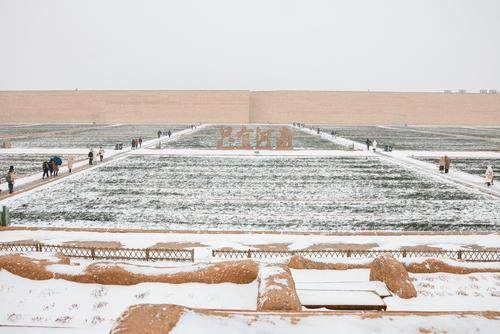 大雪驟至,只有河南·戲劇幻城景區(qū)銀裝素裹,百畝麥田披上雪被,形成大片起伏的白色波浪,星星點點的翠綠麥苗點綴其間,展現(xiàn)出一幅生機盎然的唯美圖景。放眼望去,黃土澆筑的夯土墻與漫天飛舞的雪花相互映襯,留白韻味的冬景畫卷在幻城的格子空間鋪展開來,在此刻,厚重與輕盈、靈動與莊重達到了極具美感與夢幻的和諧融洽。