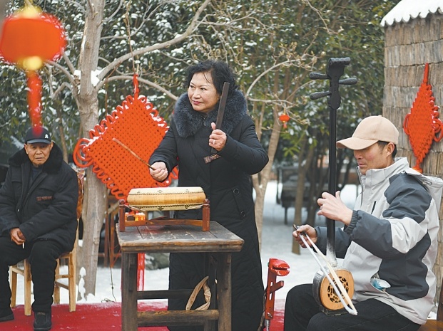 崔銀娣(中)在馬街村藝人之家表演河南墜子 禹舸 攝