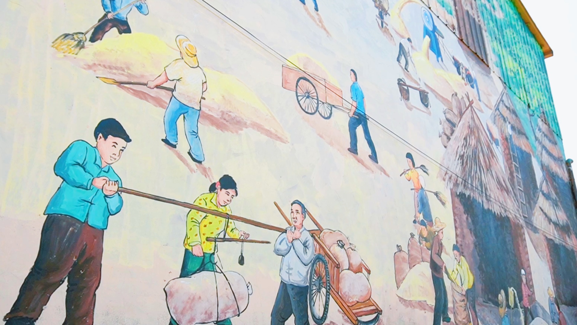 鄉(xiāng)愁是鐫刻在每一個中國人心中的永恒情愫。對于王建民大爺來說,承載他童年記憶的不僅有這些老農(nóng)具,還有西馬莊村隨處可見的,以“五谷豐登、六畜興旺”為內(nèi)容的農(nóng)耕文化主題墻畫。