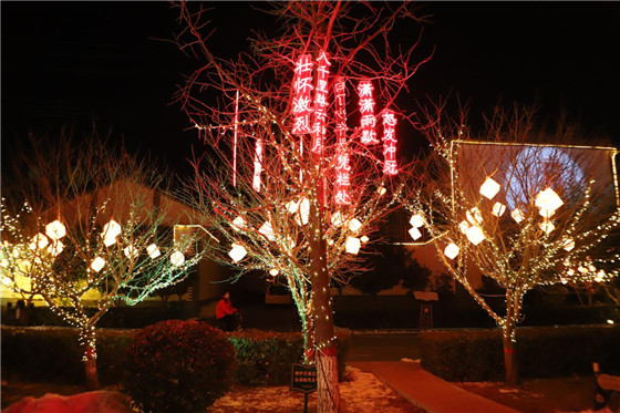 樹上懸掛的詩(shī)詞燈串 王璐 攝