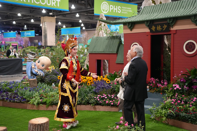 費(fèi)城花展是美國(guó)最大、世界上舉辦時(shí)間最長(zhǎng)的園藝活動(dòng),已成功舉辦195屆。在繁花似錦的展園內(nèi),鄭州展位以“功夫鄭州·花俏嵩山”為主題,巧妙地以嵩山與少林寺的雄偉山川為背景,融入月季、牡丹等中國(guó)傳統(tǒng)名花,展現(xiàn)出別具一格的東方風(fēng)情,獨(dú)具匠心,令人陶醉。