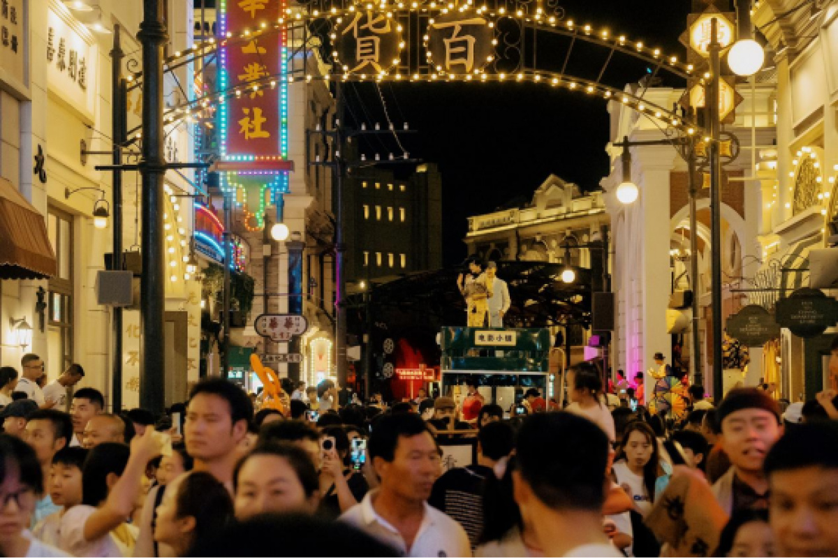 百場(chǎng)沉浸式演藝更是重頭戲。上百場(chǎng)說書雜技、古典戲法、對(duì)臺(tái)戲等精彩國(guó)潮節(jié)目不間斷上演;《中原刀客》《刺殺行動(dòng)》等精彩劇目讓游客享受酣暢淋漓的觀劇體驗(yàn);新劇《太極》、大劇《穿越德化街》打造現(xiàn)代舞美將傳統(tǒng)國(guó)粹、歷史記憶展現(xiàn)到極致;更有王牌夜游《一路有戲》四幕大戲、全園演繹,游客將與販夫走卒擦肩而過、與豫商名伶點(diǎn)頭之交,跟隨演員一起飆戲!