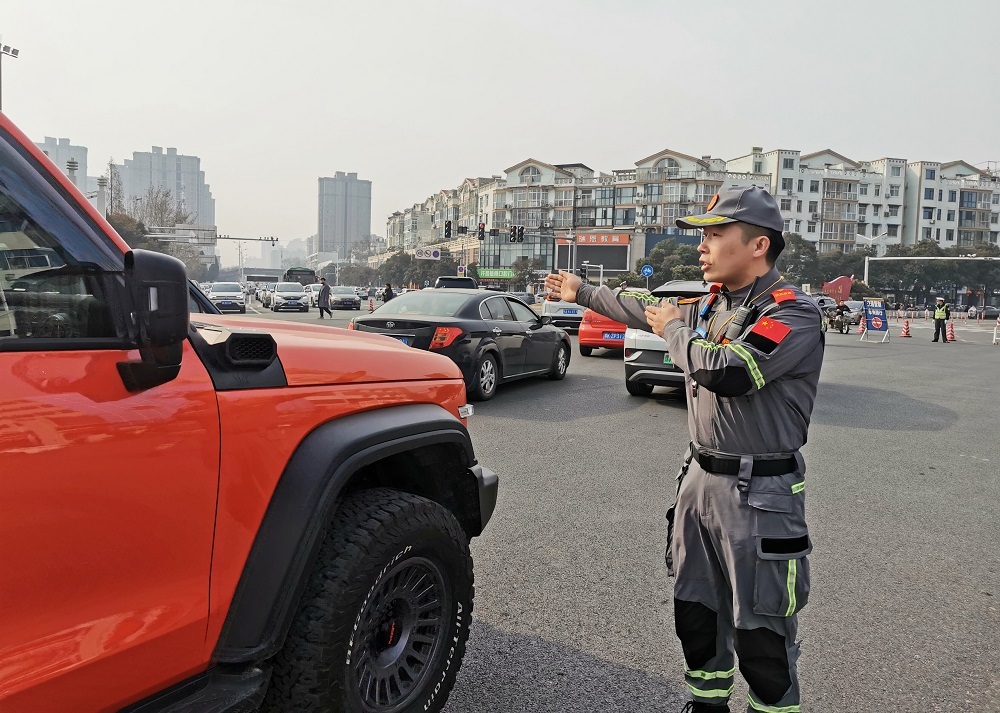 許昌漢風(fēng)救援隊(duì)志愿者開展車輛引導(dǎo)服務(wù) 喬利峰 攝