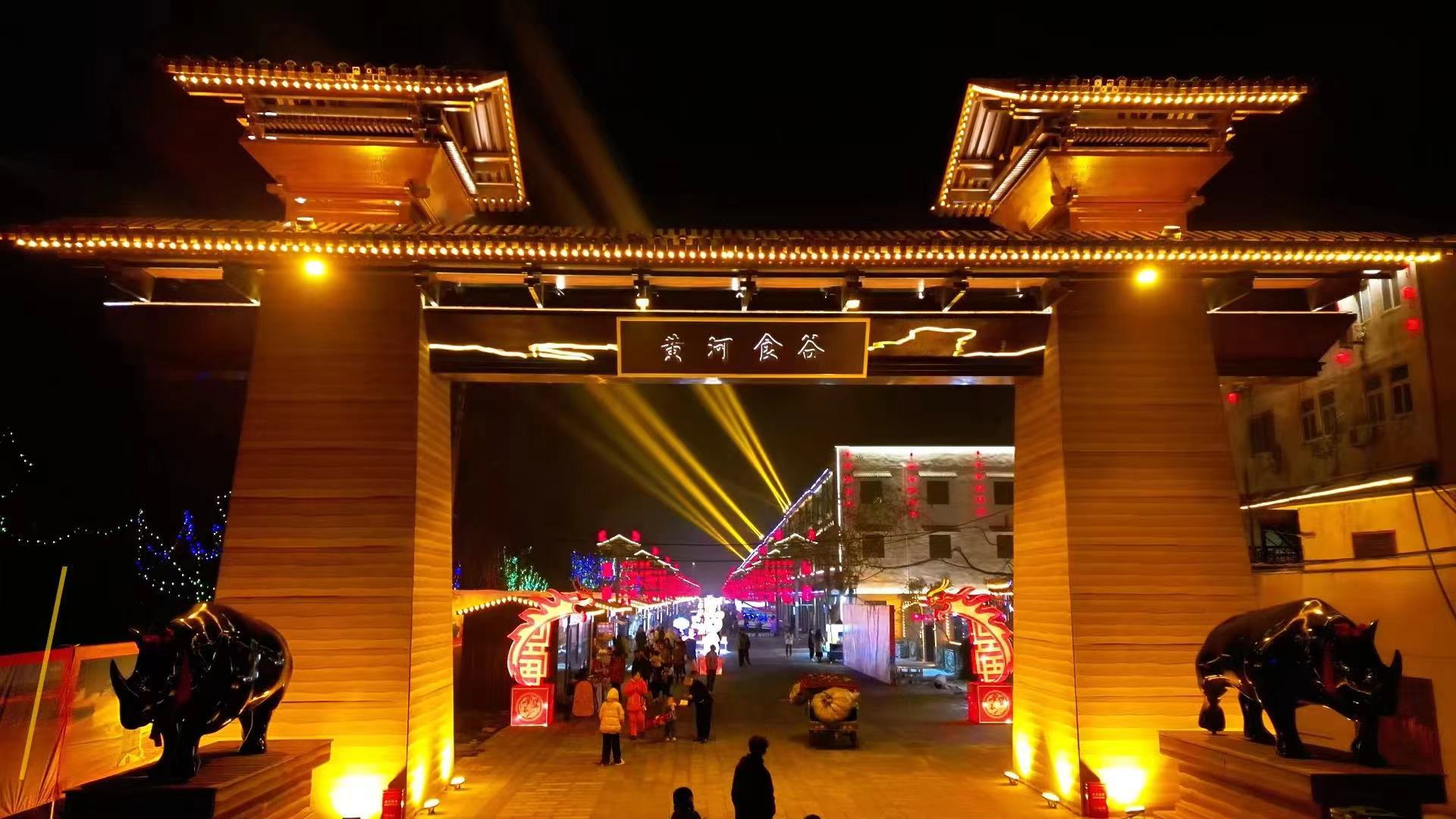 2024年1月22日,首屆花園口黃河食谷燈會暨民俗文化節(jié)潮出了圈,搖身變?yōu)?ldquo;黃河食谷”的防汛路遍布食谷市集,餐飲小吃、民俗民趣、年貨攤位等100余家,500米的市集長龍讓市民游客嘗遍沿黃九省(區(qū))特色美食。逛累了吃,吃飽了看,拉洋片、木偶戲、吹口哨、捏面人、剪窗花、皮影戲等非遺表演,社火、秧歌、舞龍、舞獅、盤鼓等民俗活動好戲不停、引人入勝。