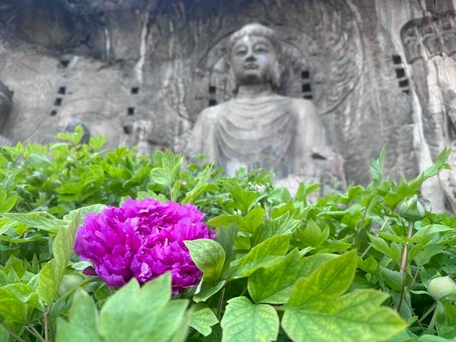 2月10日,龍年新春大年初一,在洛陽龍門石窟景區(qū),洛陽牡丹凌寒綻放。