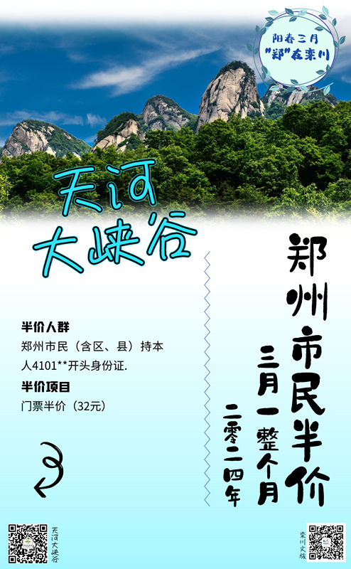 另外,在3月31日之前,老君山(需提前預約)、雞冠洞、重渡溝、伏牛山滑雪度假樂園、王府竹海、養(yǎng)子溝、天河大峽谷七大景區(qū)對全國屬龍、姓名中含獨立“龍”字的游客免門票政策,游客需憑有效證件享受此優(yōu)惠政策。