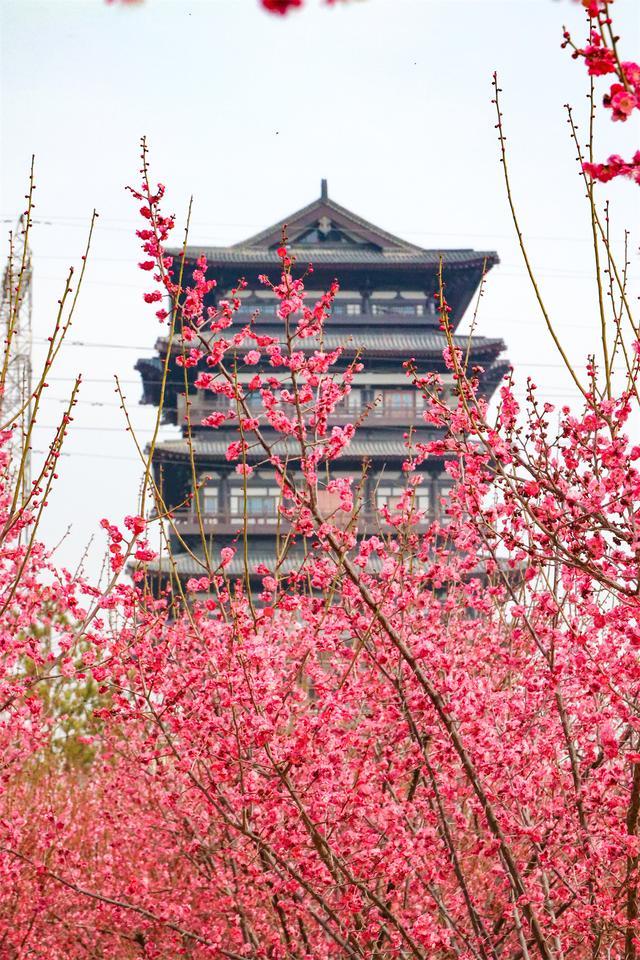 3月10日,春暖花開,鄭州市西流湖公園“千金梅嶺”的梅花綻放芳容,市民紛紛走進(jìn)公園賞梅踏青。